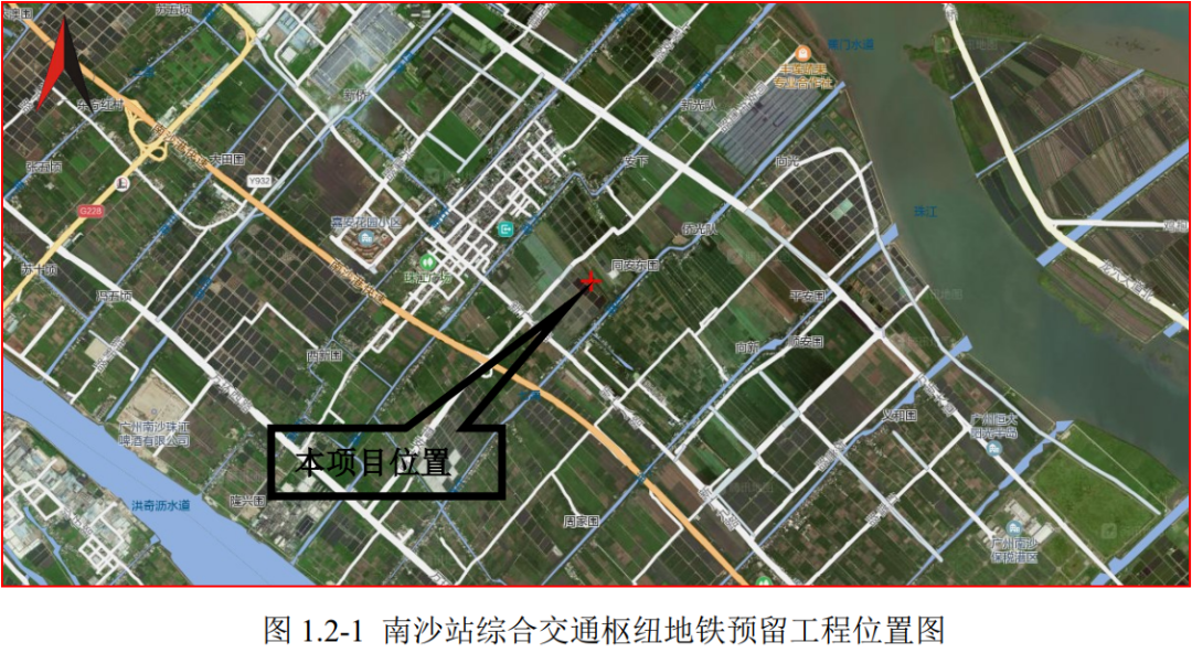 项目场地位于地铁18号线万顷沙站东侧,紧邻十八号线万顷沙站,北接同安东围路,南止于十八号线万顷沙站Ⅰ号出入口,东止于万顷沙车站土建项目部食堂。