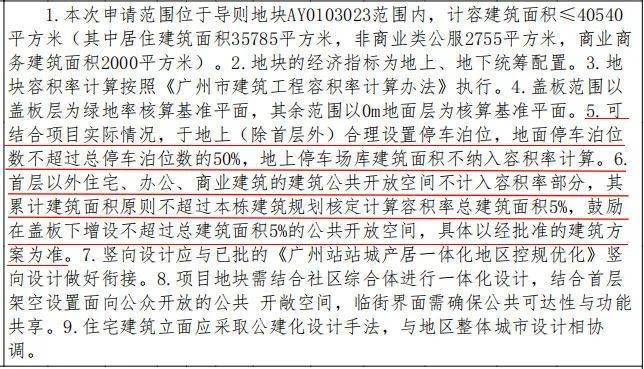 另外,《规划条件》显示,地块可结合项目实际情况,于地上(除首层外)合理设置停车泊位,地面停车泊位数不超过总停车泊位数的50%,地上停车场库建筑面积不纳入容积率计算。
