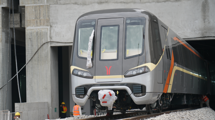 广州第1条地铁环线(即地铁11号线火车站—琶洲—火车站)首列车,到货!