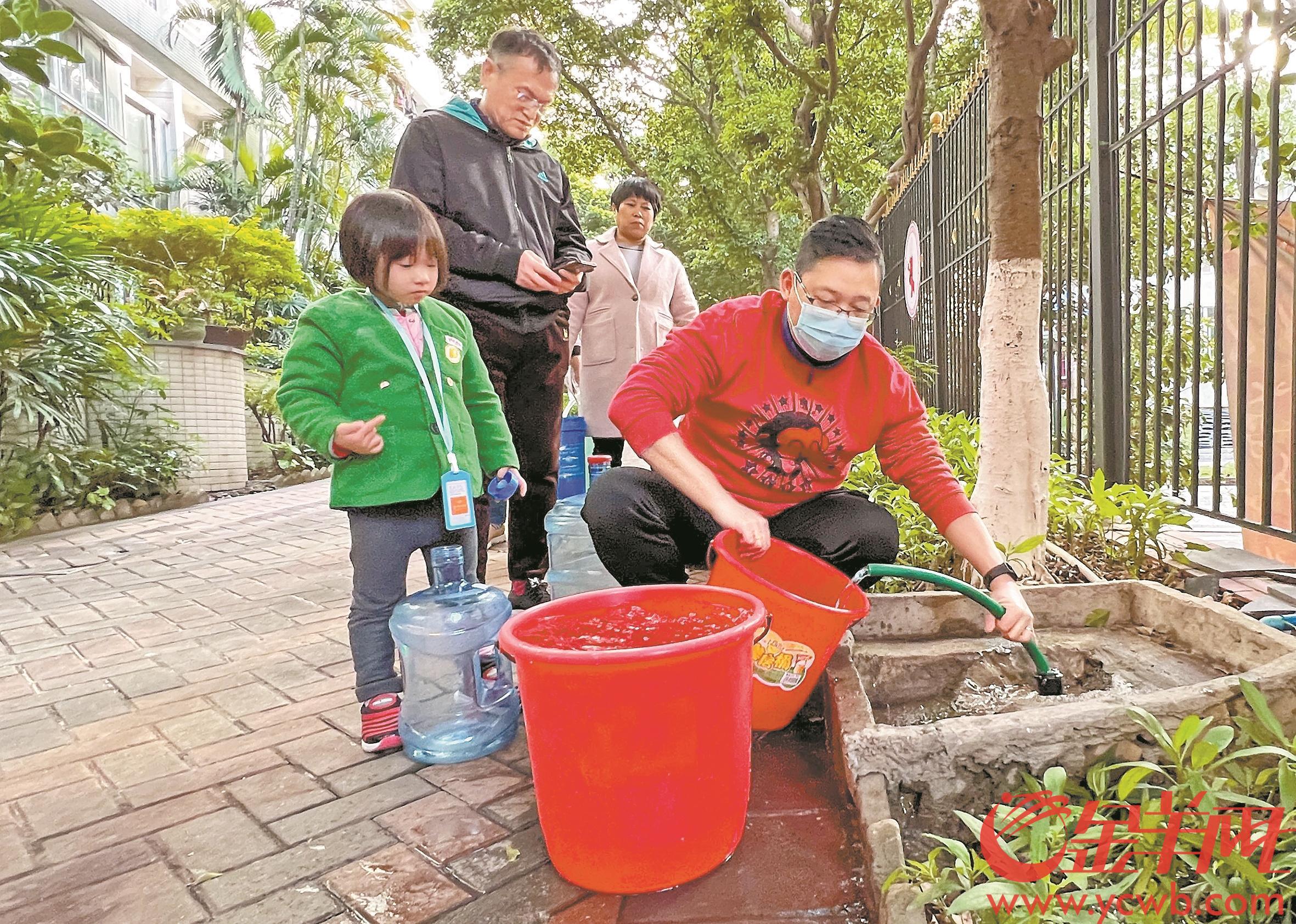 “已经连续两天没有水了。”记者24日和25日连续两天前往海珠区工业大道中的保利百合花园小区采访时,均看到居民应急取水的场景。由于小区处于海珠区的地势高位,供水管网的低水压难以将水输送至小区。在24日和25日,广州自来水公司均安排应急供水车进入小区为居民应急供水。有的居民则在小区地势较低处,找到绿化水龙头应急取水用。一名为小区送桶装饮用水的小哥反映,小区停水期间的桶装水出售量有所增加,有的居民购买桶装饮用水后不仅饮用,还拿来洗澡。