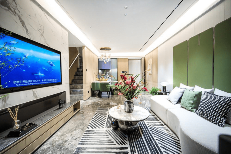 此类户型最吸引买家的特点之一,就是同等面积拥有更高空间使用效率,比市场上同类产品多一个户内房间。5.8米叠墅层高的超大尺度客厅,拥有270°大型落地窗,极大地拓展空间的使用效率,拉伸了景观视野。尤其是主卧,通过对层高的规划、飘窗、阳台、房间内部门后空间等诸多细节的高效利用,让空间使用效率达到110%以上,三四十平方米的主卧空间,既灵动又大气。在配置方面,室内能看到松下、索菲亚、乐家、无敌金刚、博世、罗格朗等国内外品牌的身影。可以说,每一个尺度的考量及交付标准的打造,都足见新世界中国的匠心。