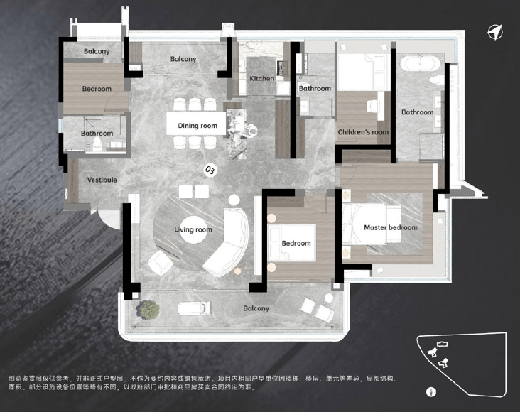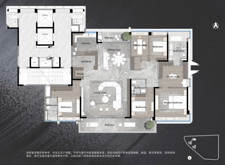 户型方面,主推建面约127、142、200㎡大平层产品,总货量约500套,吹风价10万+/㎡。