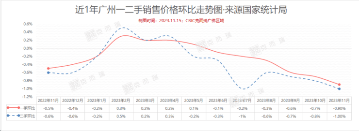 截至2023年11月,无论是新建商品住宅还是二手房价格,广州的价格环比降幅都是今年以来最大的。