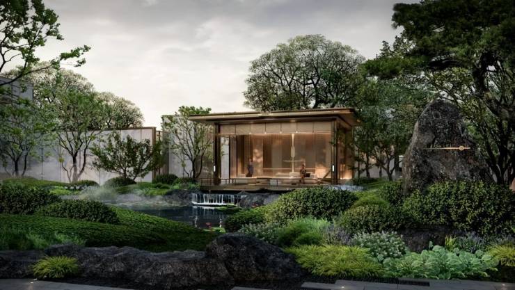 项目为海珠首个新中式楼盘, 园林设计以《梁园飞雪图》为蓝图,植入曲水飞虹、万倾涵碧、松间、观澜、林隐等景观组团,中式审美拉满,约12万方的体量,在寸土寸金的海珠西相当罕见。