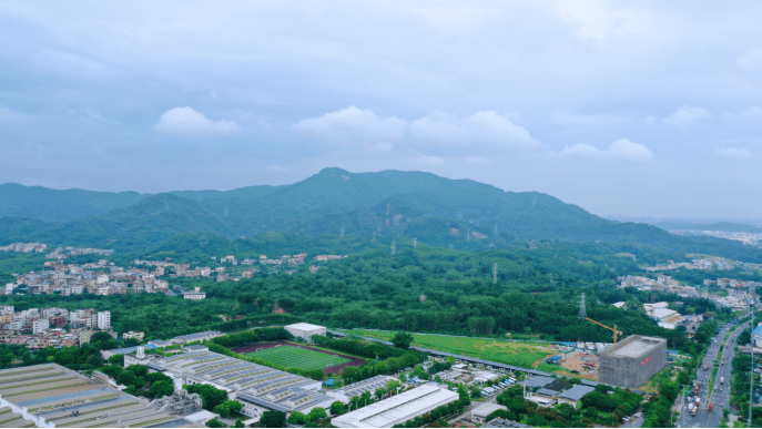 向北轻轻眺望,连绵不绝的南香山横亘在眼前,茂密的山林尽显盎然绿意,也如同一座巨大的天然氧吧,不断为片区输送着负氧离子。