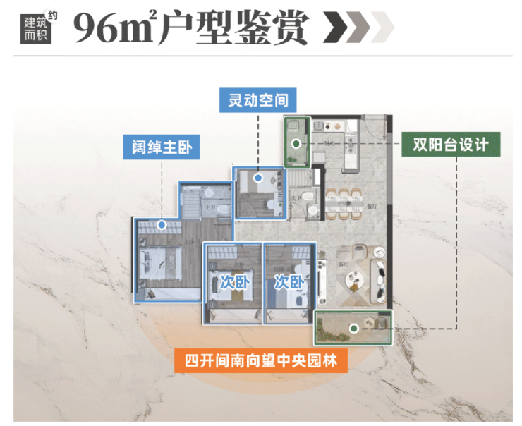 建面约96㎡户型,更是板块内独一份。