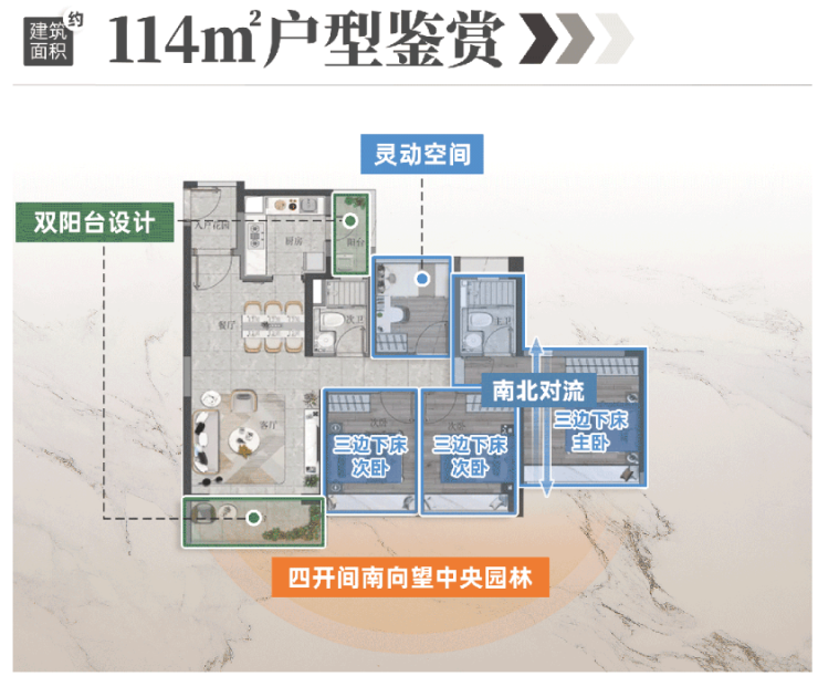 而央璟这次推出的建面约74-114㎡重磅产品,就通过极具人性关怀的户型设计,把人居舒适度拉满,完美解决家庭生活痛点,让市场看到“真正的好房子并不等于高赠送率”。