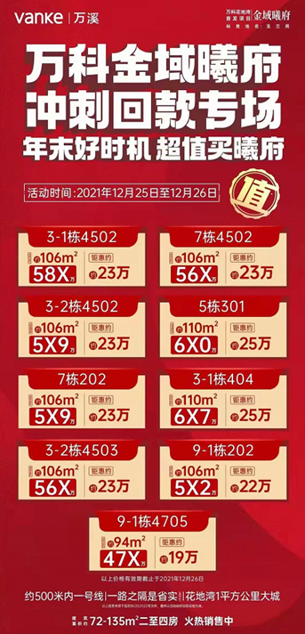 荔湾 万科金域曦府万科金域曦府 举行冲刺回款专场,12.25-26推出9套一口价房源,较高省25万元!