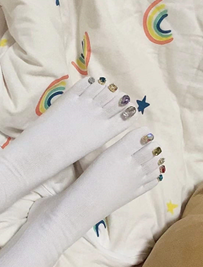 “天气冷了穿袜子美甲就露不出来了,没关系,送一对美甲袜子,还是带钻的呦~”