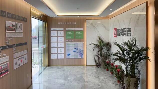 走进湖州安吉鹰牌陶瓷旗舰店,映入眼帘的便是鹰牌陶瓷鲜明的LOGO及49年的发展历程与母公司天安新材(603725.SH)的新型环保饰面材料,“可交付的颜值、可视化的健康” 彰显鹰牌陶瓷“让每个人都能享有健康美好的家居生活”理念。