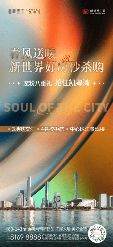 趁着上车时机浮现,即买即住即取证!正值新世界凯粤湾【春风送暖·新世界好房秒杀购】火爆开场,建面约80-143㎡南向望江新品点燃“小阳春”置业热潮!首付50万起,送20年物业管理费,八重壕礼限时尊享!
