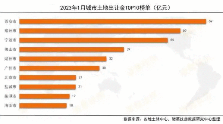 另据诸葛找房数据,1月份城市土地出让金TOP10榜单中,长三角城市土地收金表现相对亮眼,占据半数份额。另外,土地出让金TOP10榜单中也有北京、广州两个一线城市的身影,分别实现21亿元、30亿元的土地收金。
