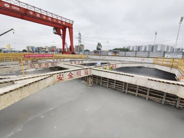 为确保施工安全,广州地铁联合各施工单位开展技术攻关,采用“一槽两钻+溶洞探边”相结合的方式,保障地连墙、临时立柱施工安全,同时对周边建(构)筑进行隔离保护。此外,为维持基坑内干燥的作业环境,基坑施工采用坑内管井井点降水法和明排法,有效防止基坑底涌水、涌砂。