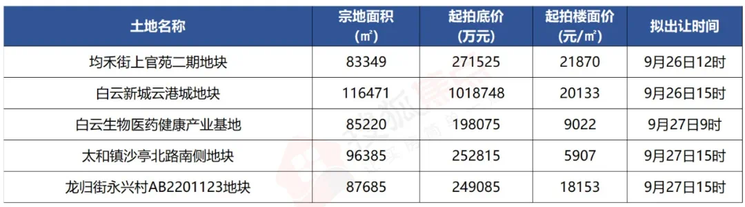 广州,终于要上场了。9月26日、27日两天,广州48宗涉宅地齐齐登场,分9时、12时、15时三个时间段竞价出让,宗地总面积逾303万㎡,计容建面逾852万㎡,总起拍价超1124亿元。