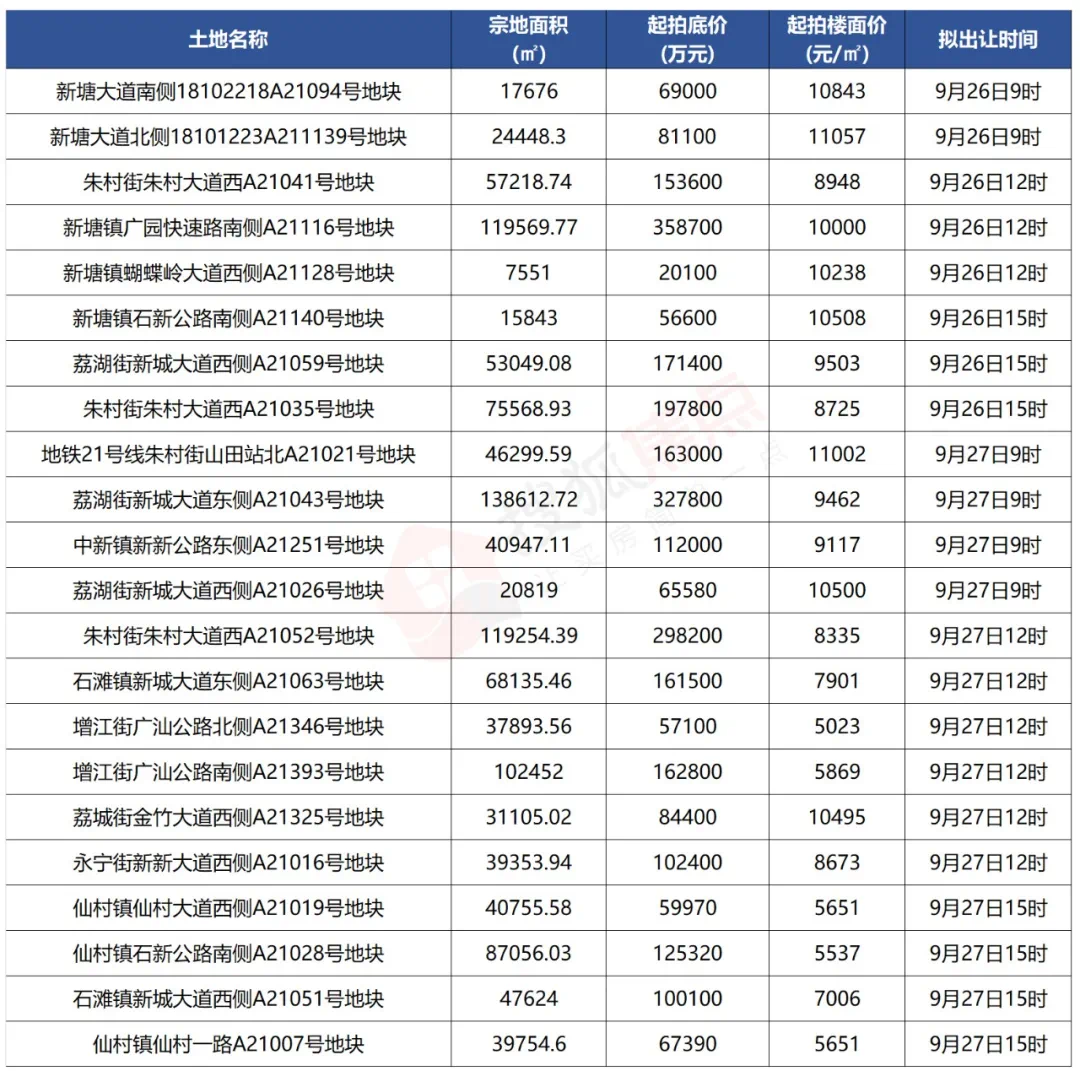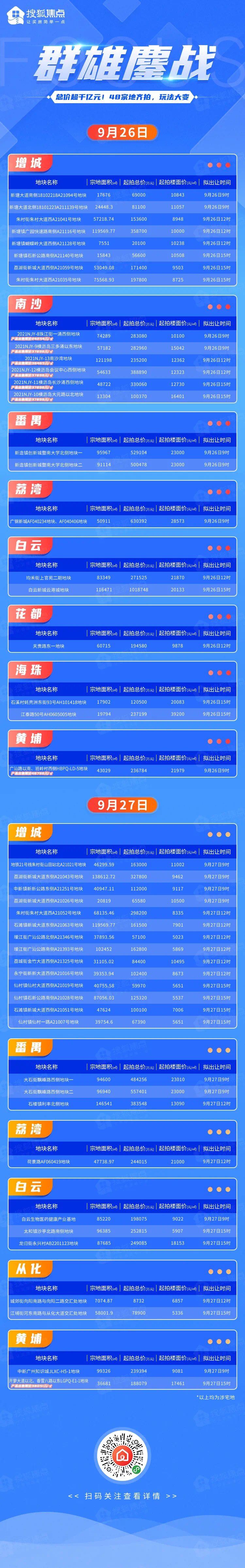 9月26日、27日两天,广州48宗涉宅地齐齐登场,分9时、12时、15时三个时间段竞价出让。