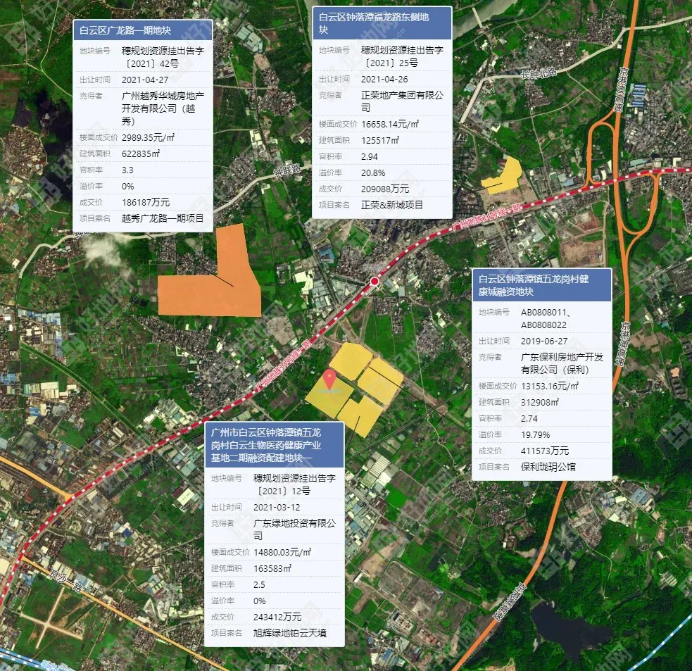 白云区也有5宗涉宅地推出,分布于均禾、钟落潭、龙归、太和与白云新城。
