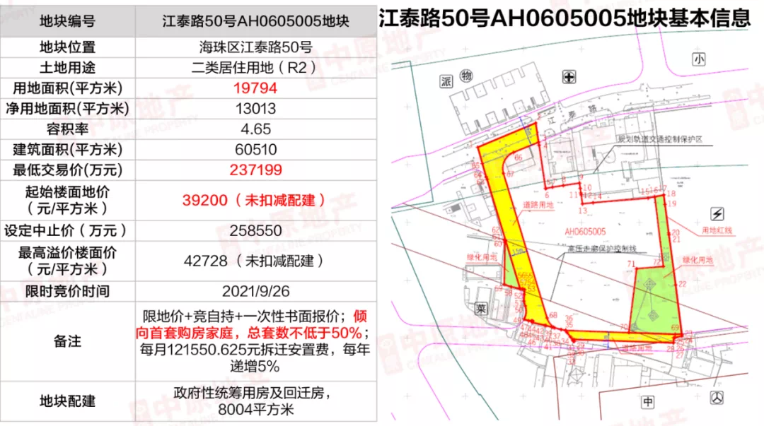 新房紧俏的海珠区推出2宗宅地,为市场解渴。江泰路50号AH0605005地块临近地铁江泰路站,是本轮48宗挂牌地块中起始楼面价较高的地块,出嫁条件也略为苛刻。
