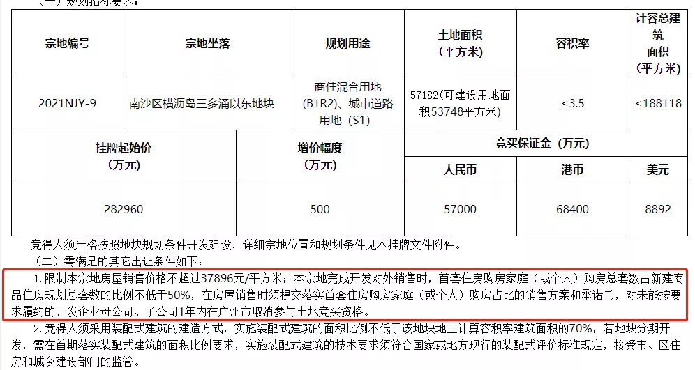 南沙推出6宗涉宅地,分布于横沥岛(4宗)、珠江街(1宗)、南沙湾(1宗)。值得关注的是,这6宗地均采用“限房价+限地价+竞自持+摇号”的方式出让,且还限制了销售对象,首套住房购房家庭(或个人)购房总套数占新建商品住房规划总套数的比例不低于50%。