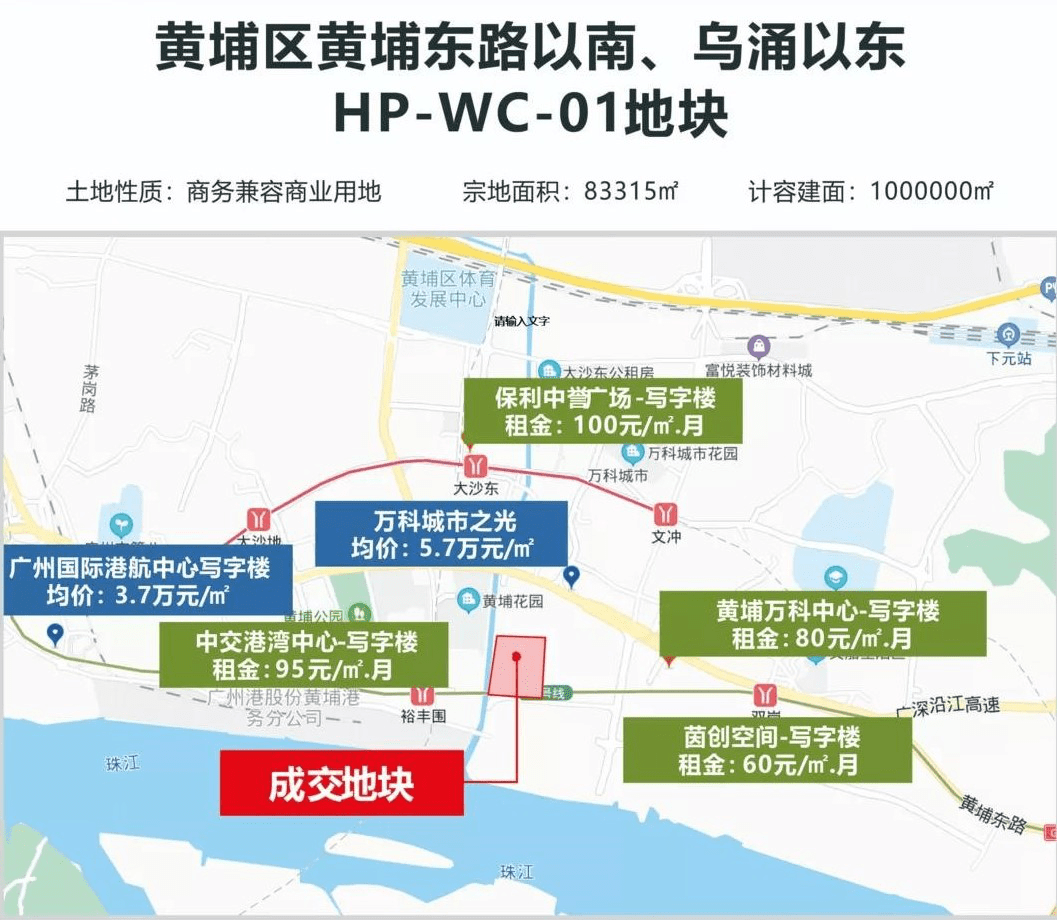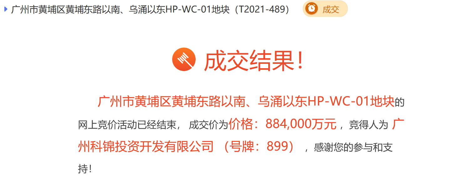11月1日),广州市黄埔区黄埔东路以南、乌涌以东HP-WC-01地块以总价88.4亿元,被广州科锦投资集团斩获,成交楼面价达8840元/㎡,地块用途为商务用地(B2)、商业用地(B1)。