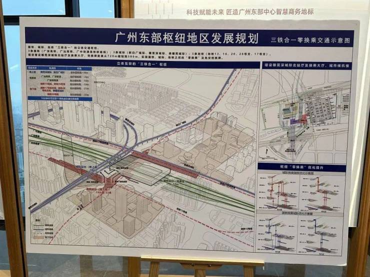 除了产业规划,广州东部枢纽地区还将打造国铁、城际、地铁”三铁合一”的立体交通枢纽。