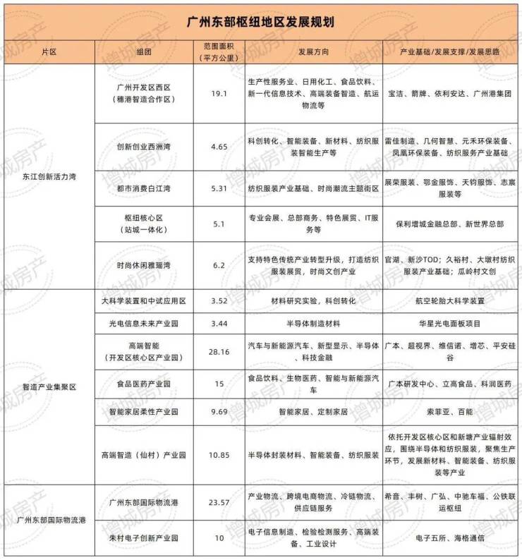 与此同时,广州东部枢纽地区发展规划共划分为3大区域。