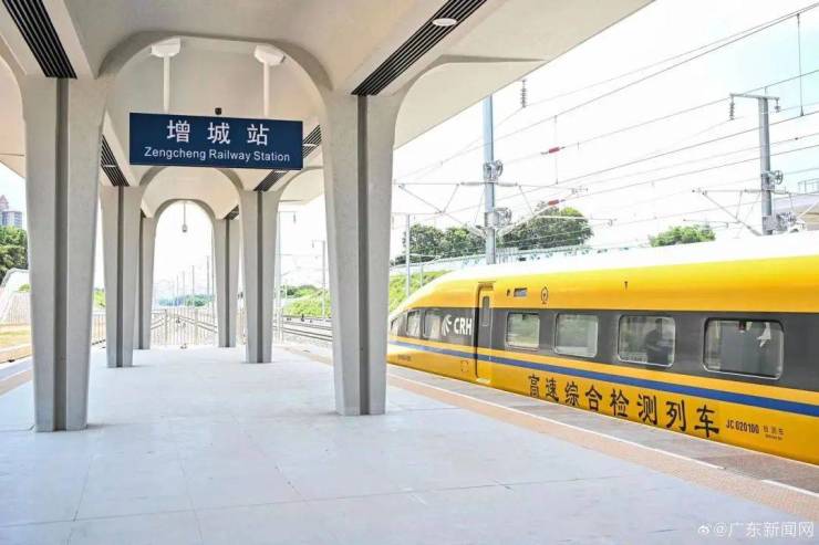 目前,广汕高铁增城站、新塘站均开启联调联试,下一步将进入试运行阶段!测试列车停靠增城站、新塘站!