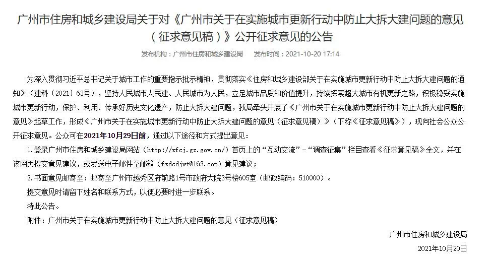 紧接着,10月广州发文强调防止大拆大建,积极稳妥推进旧改。这也是继住建部文件出台后,全国排名前列个正式发文跟进的城市。