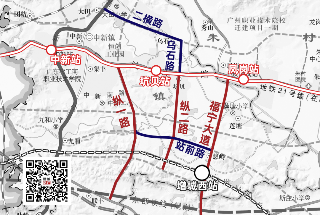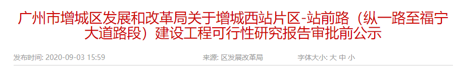 此外,位于中新的增城西站片区-站前路的(纵一路至福宁大道路段)建设工程可行性研究报告也进行审批前公示了。
