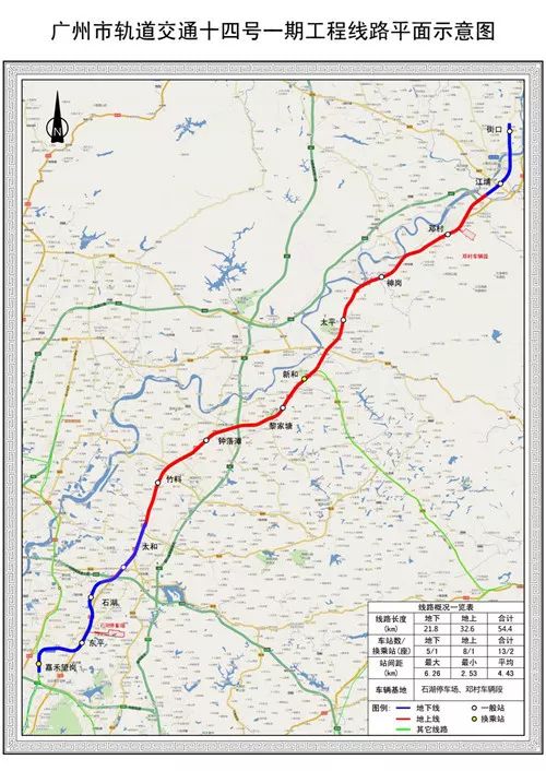 地铁集团宣传部部长许坤杰介绍,十四号线一期(嘉禾望岗至街口段)全长约54.3公里,共设13座车站,其中地下站6座(嘉禾望岗、东平、石湖、太和、江埔、街口)、高架站7座(竹料、钟落潭、黎家塘、新和、太平、神岗、邓村)。十四号线是落实广州城市“北优”战略、实现从化与城市中心区快速联系的交通线路,其功能上重点是解决从化到广州中心组团的交通需求,兼顾引导白云区、从化区沿线组团的发展。