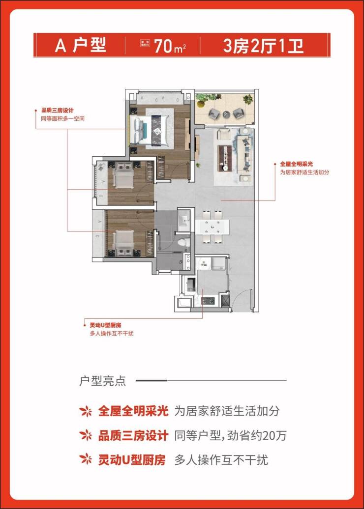 爆款王 建面约70㎡三房 上车优选