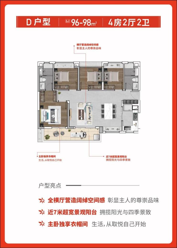 改善王 建面约98㎡ 约7米超长阳台 南北对流