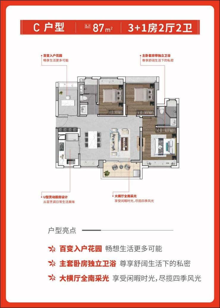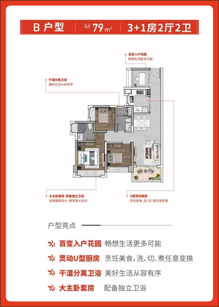 热销王 建面约79㎡3+1房两卫 南向园景