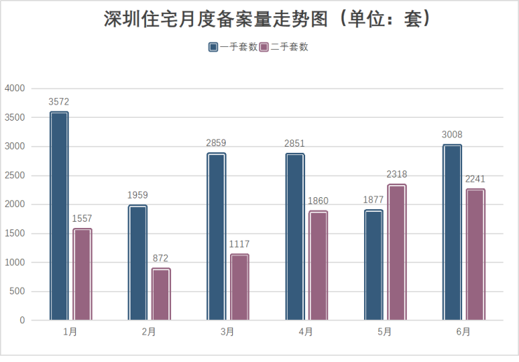 从数据来看,2022年上半年深圳各月份新房住宅成交量均处于低位水平。具体情况为,2022年1月成交量为3572套,2月受春节长假影响滑落至1959套,3月和4月分别成交2859套和2851套,5月以1877套的成交量跌落至上半年月度较低量。