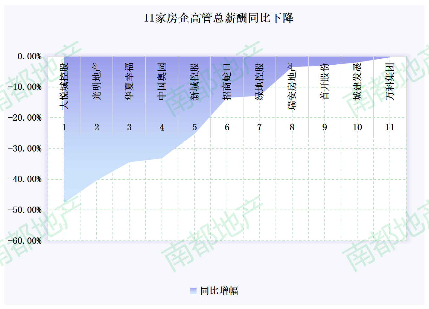 除了滨江集团高管总薪酬不变外,还有11家房企发放给高管的薪酬出现下降,当中降幅超四成的有大悦城控股和光明地产,该两家房企近年业绩均相对不理想。