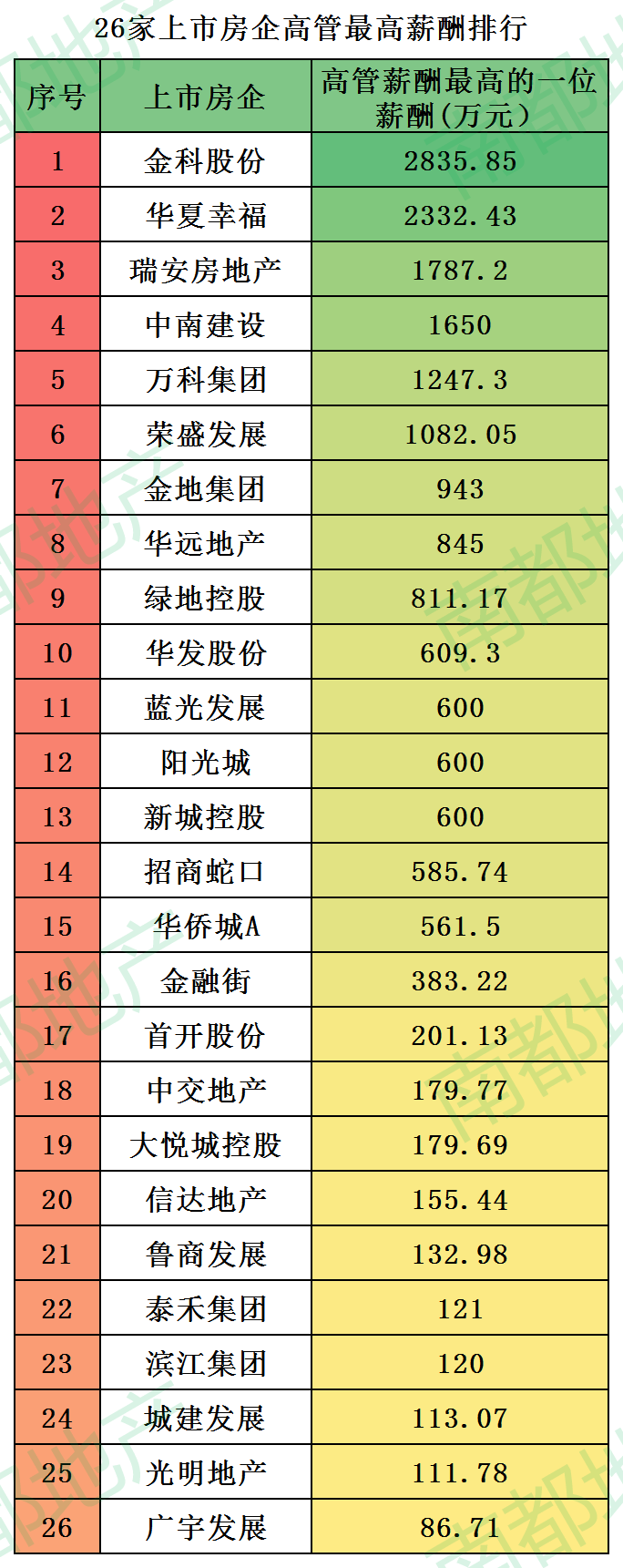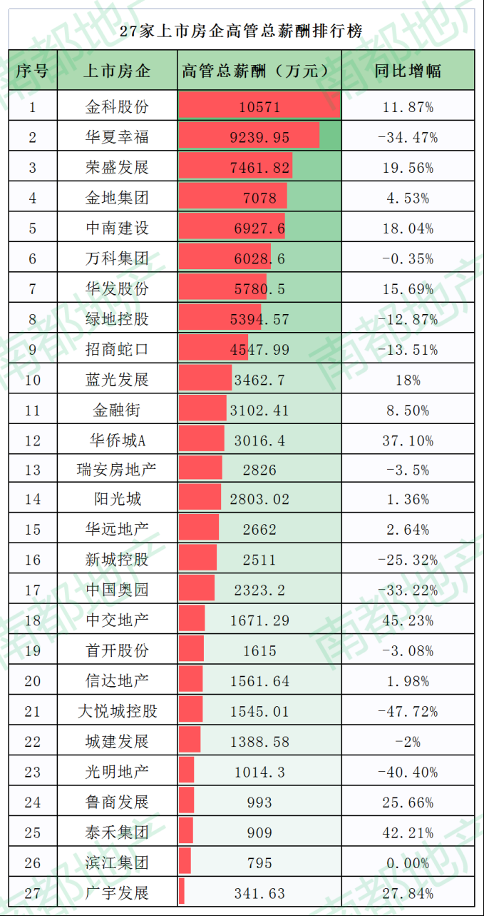 较新房企高管年薪曝光,有人2835万!10家房企总裁加薪