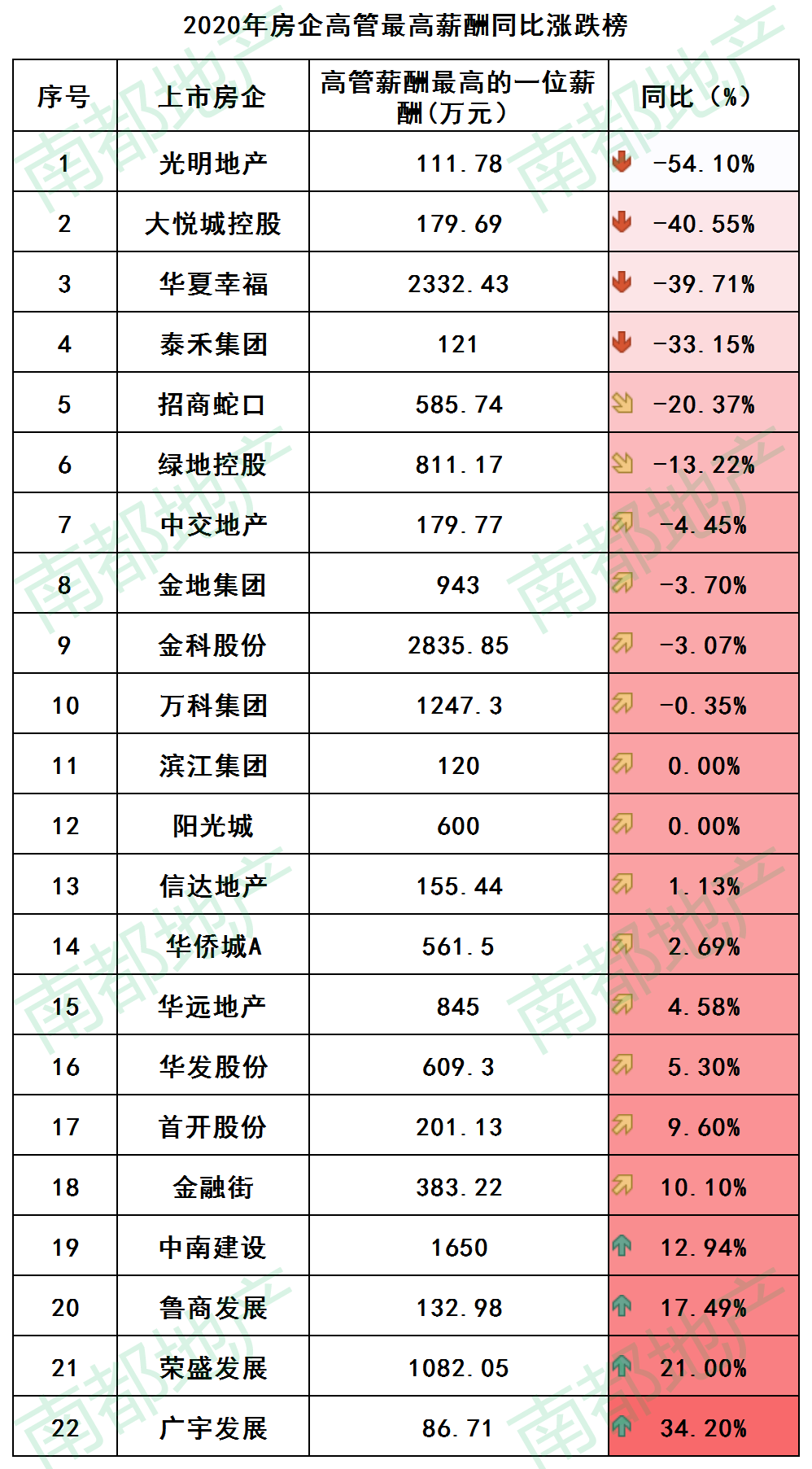 从房地产行业本身看,虽然去年业界较高薪酬的高管降薪达1200万元不等,高管涨薪与降薪比例相近。