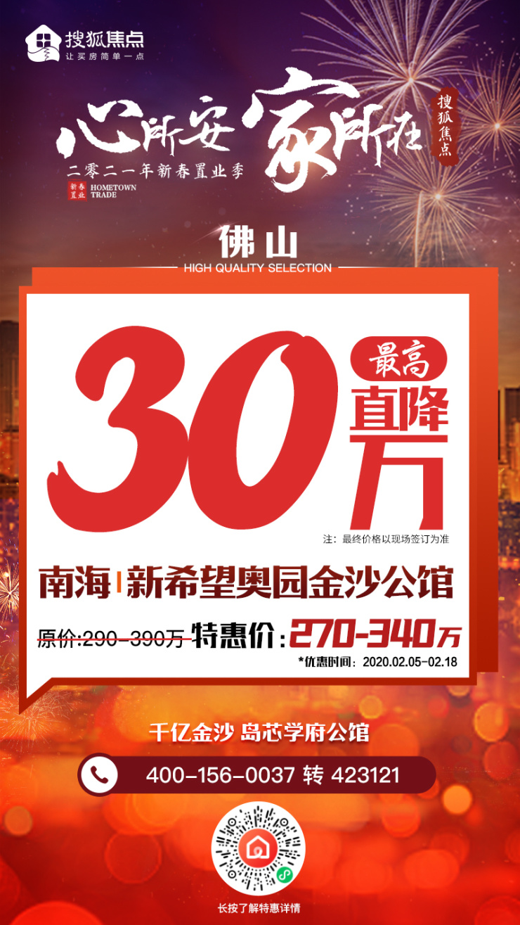 新希望奥园金沙公馆位于佛山市南海区里水。即日起-2月18日,特推出新春一口价单位,较高直降30万!
