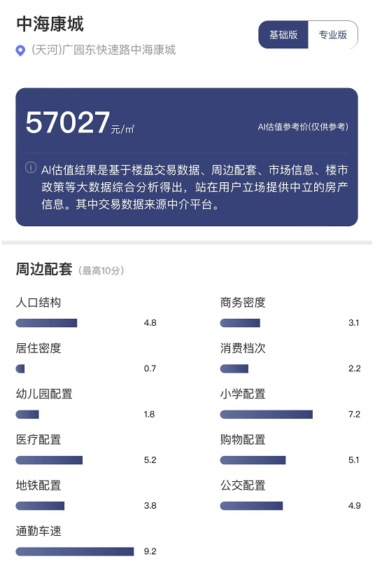 基于交通、医疗、商业等方面的优势,每经品房小程序测算,中海康城的价格在未来几年将保持缓慢增长,房价预计会跑平天河区平均涨幅,高于天河区29%小区。