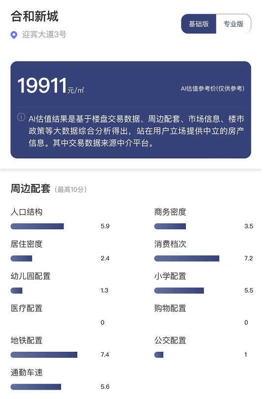 在花都区内,合和新城属于老年人口居多、学生儿童比例较小的区域,周边有两所小学、一所幼儿园。虽然周边有17个公交站,但配置得分仅优于花都区10%的住宅项目,相对属于公交出行舒适度较低的区域。