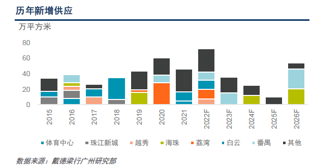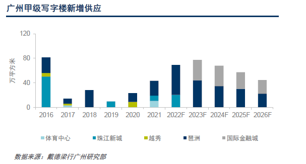 2022年广州政府工作报告中提到要促进传统产业升级,加快发展先进制造业集群,增强制造业核心竞争力。先进制造业发展所带来的需求有望成为广州办公市场的重要支撑之一。未来三年,广州甲级写字楼市场将迎来超过2142万平方米的新增供应。优质办公物业的井喷式入市将刺激市场活跃度,加速形成新的办公市场格局,并为产业升级提供有力的载体支持 。