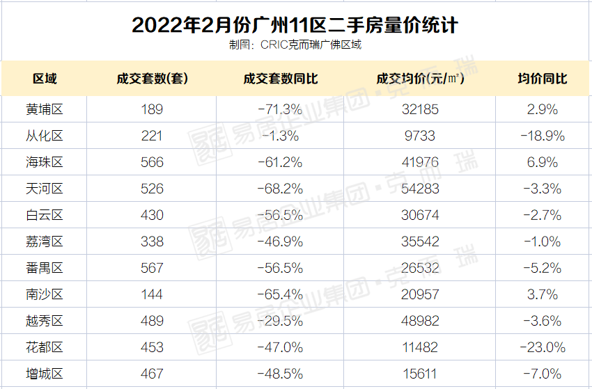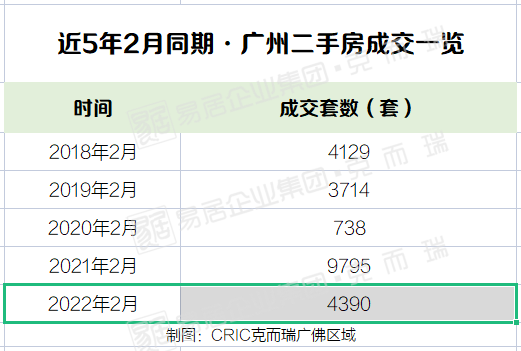 另外克而瑞数据统计,今年2月份广州二手房成交4390套。