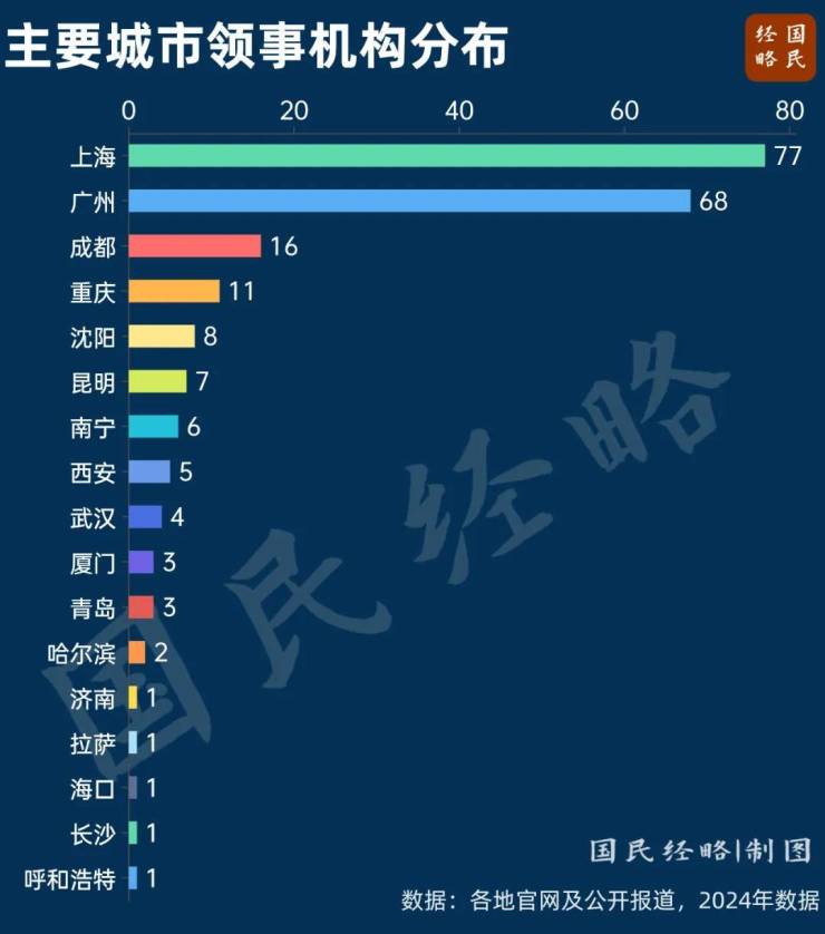 广州排名之所以高过深圳,在于广州是国家中心城市和综合性门户,还是国际交往中心,无论是跨国公司总部、领事馆数量还是国际航线,都位居全国前列。