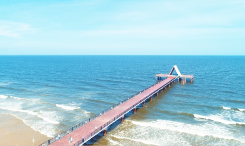 鼎龙湾的“无上清凉”体现在多个方面,除了在水世界玩水,游客们还可以选择去海边享受无敌海景,感受大海的广阔和凉爽。在鼎龙湾海平面延伸300米的海上栈桥和观海平台上,有一处面朝广阔南海的三角形建筑叫做“海之角”,是鼎龙湾有名的网红观海景点。这里深入大海“腹地”,将整个海面都揽入了怀中,视野极为广阔,拍出的照片效果优质。在吹着海风,感受海的凉爽之余,拍照打卡也是去鼎龙湾的游客不可错过的流程。