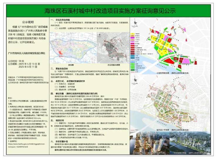 日前,海珠区人民政府官网公布石溪村城中村改造项目实施方案征询意见公示,引人关注。