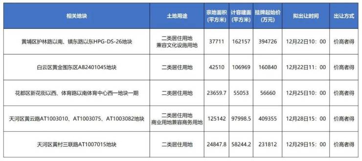 近期广州待出让涉宅地情况一览,点击图片查看大图