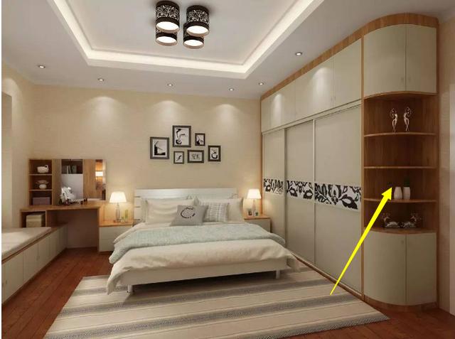 其实这种衣柜半圆角的做法,确实是有些年头了。对年轻人来说,单从形式上看这样的半圆角衣柜,确实跟很多装修风格不搭配。如果装修是比例搭配没做好的话,不仅会浪费卧室的空间,显得不美观,还会有很强的年代感。