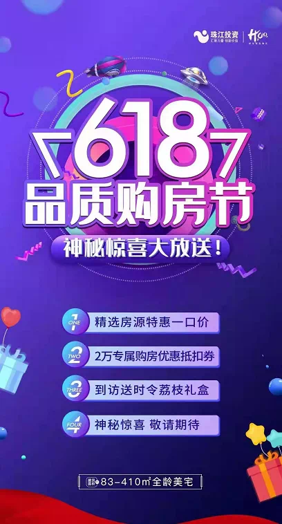 项目现主推建面约83-410㎡全龄美宅,并于“618”期间,推出“精选房源特惠一口价、2万专属购房优惠抵扣券”等活动。