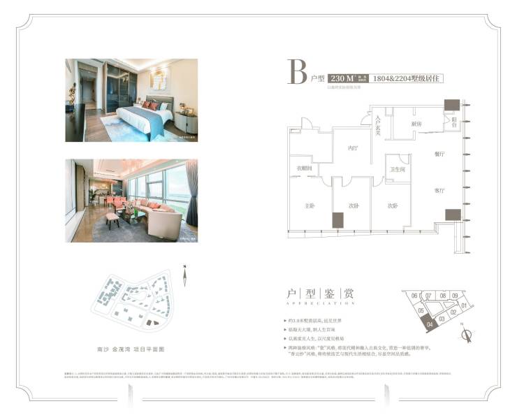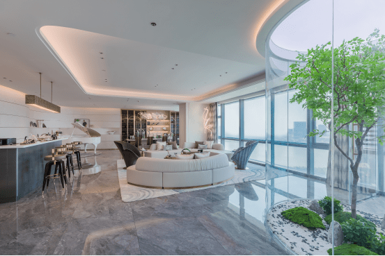 全屋配置全落地LOW-E中空玻璃幕墙,为生活带来IMAX般的视野尺度,约270°阔绰观景台,极目三江汇眼前,纵览海湾一线与十里红树林天然氧吧,是都市难觅的峯层藏品。