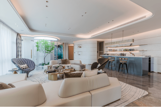 海上会客厅约3.8m层高尺度,超越珠江新城普通豪宅约3.3-3.5米的标准层高,为空间带来优质的采光通风效果,接纳更多阳光入户,演绎生活的奢华境界。
