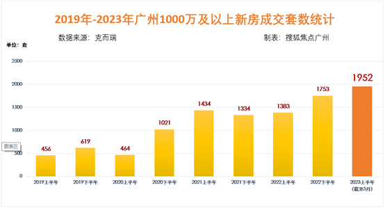 而千万级豪宅量价齐飙,成交1952套,仅五个月时间,广州豪宅成交便接近2019年(1075套)的近2倍货量,再创同期新高(数据来源:克而瑞)。